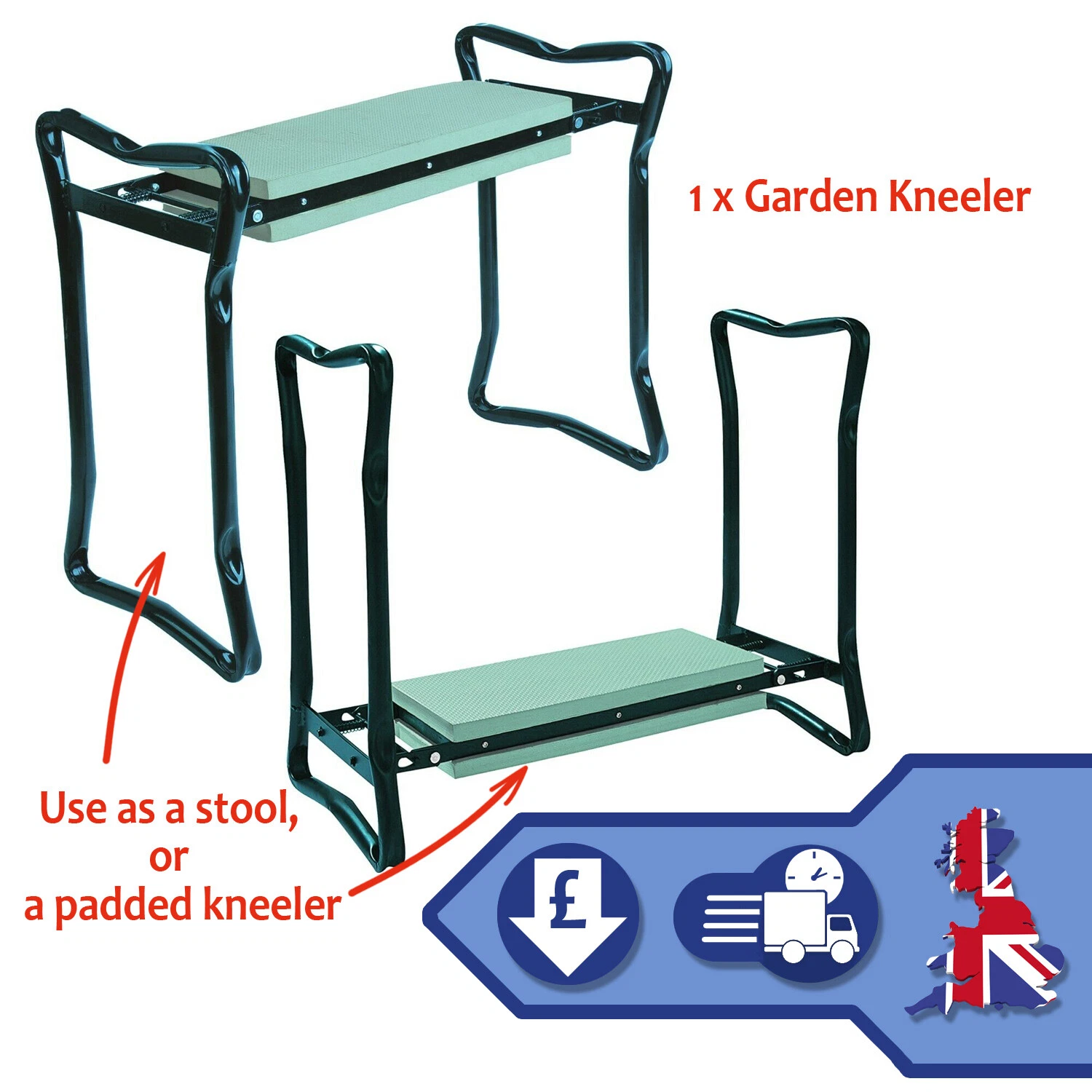 Constructed from sturdy steel tubing, the kneeling surface is made from EVA foam to provide comfort. When inverted, it transforms into a cozy stool. Additionally, it folds compactly for easy storage and effortless transport.
