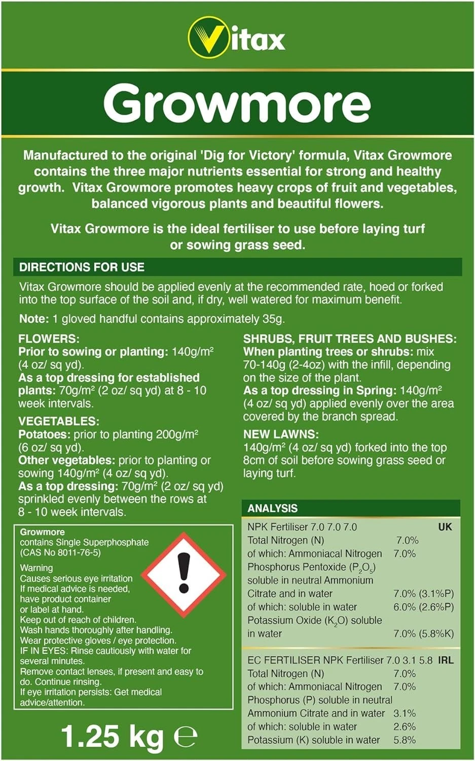 IDEAL PRE PLANTING DRESSING: Incorporate into soil compost before sowing planting providing essential nutrient boost establishing plants strong root systems rapid early growth essential foundation successful gardening year ahead properly prepared ground ensures best start possible always recommended method advised experts.